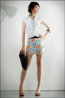 要領(lǐng):活潑的圖案,使普通款式的裙子變得吸引人,不過這種MINI的款式,不適合粗腿的MM.