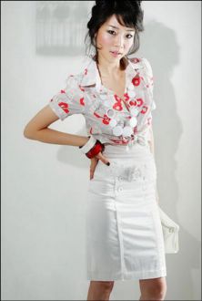 要領(lǐng):胸部的裝飾,可以掩蓋胸型的不足;白色下裝,有視覺膨脹感,廣東身材嬌小的MM最適合了。