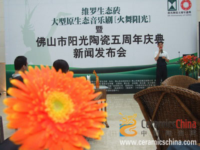陽光陶瓷公司市場(chǎng)部黃云岳經(jīng)理在發(fā)布會(huì)上給媒體記者介紹了公司的整體情況,并預(yù)報(bào)了陽光公司將于9月6日舉行的大型音樂劇《火舞陽光》的具體細(xì)節(jié),引起全體媒體朋友的廣泛關(guān)注。