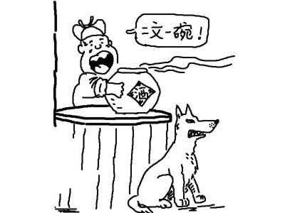 賣酒的人很是不解,就去請教鄰里的一位長者。這位長者告訴他:“你養(yǎng)的那條狗太兇猛了,人們害怕狗咬,誰還敢來買你的酒,酒變酸也就可想而知。