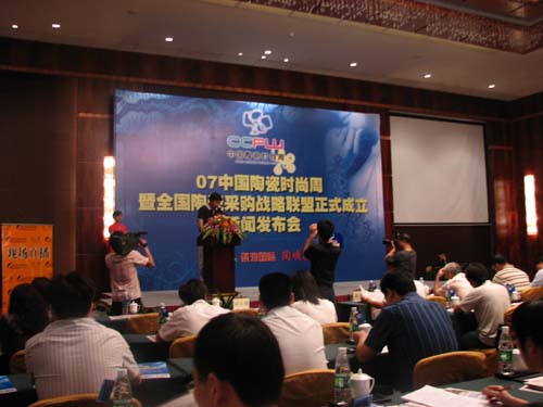 9月26日,由瓷海國(guó)際(佛山)國(guó)際交易中心和陶城報(bào)主辦的首屆“中國(guó)陶瓷時(shí)尚周”新聞發(fā)布會(huì)于佛山財(cái)神大酒店盛大舉行,瓷海國(guó)際全國(guó)營(yíng)銷戰(zhàn)略拉開序幕。據(jù)悉,以26日的2008陶瓷趨勢(shì)產(chǎn)品時(shí)尚攝影秀為起點(diǎn),本次活動(dòng)將持續(xù)至10月中旬,10月16日將舉行2008中國(guó)陶瓷趨勢(shì)產(chǎn)品發(fā)布會(huì)暨瓷海國(guó)際全國(guó)陶瓷采購(gòu)戰(zhàn)略聯(lián)盟成立儀式,屆時(shí),30多家國(guó)內(nèi)房地產(chǎn)巨頭和上百家主流裝飾企業(yè)、建材市場(chǎng)、陶瓷企業(yè)以及眾多設(shè)計(jì)師,經(jīng)銷商精英將共同見證這一歷史時(shí)刻。