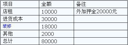 前期投入:店面為15平方米,前期投入8元,具體如下:月租1萬(wàn)元,2萬(wàn)元店鋪押金,1.8萬(wàn)元裝修費(fèi),貨物成本3萬(wàn)元,還有其他雜費(fèi)2000元,最大成本就是店鋪?zhàn)饨稹?/p>