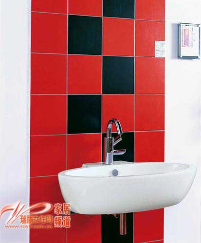 面盆所在的梳洗區(qū),早晨起床后、晚上就寢前的洗漱工作都在這里進(jìn)行,把這個(gè)區(qū)域的墻面設(shè)計(jì)得出眾些,用紅色和黑色瓷磚組拼一道主題裝飾墻,可讓一天的心情更加美好。