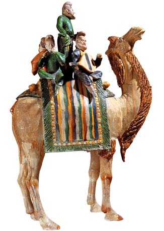 唐三彩駱駝載樂俑,陜西西安鮮于庭誨墓出土。