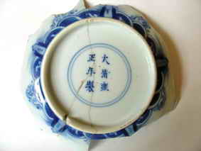 從以上八點可證,此碟為雍正官窯青花器確鑿無疑。但從碟心破裂紋及敲擊特征看,屬官窯產品在檢驗中對不合格者用銳器鑿破后挖坑掩埋性質。
