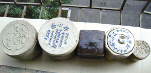 記者昨天在光叔家里看到了眾多大小不一的粗胚陶罐,它們普遍體形較大,最大的口徑達到近20厘米,像一個小菜缸。佛山老字號食品店“得心齋”的陶罐直徑約18厘米,高15厘米左右,呈灰白色,外觀非常精美,罐身還涂上了光滑的釉料,瓶蓋上面用藍色字體寫著“著名得心齋”、“提防假冒”等字樣。
