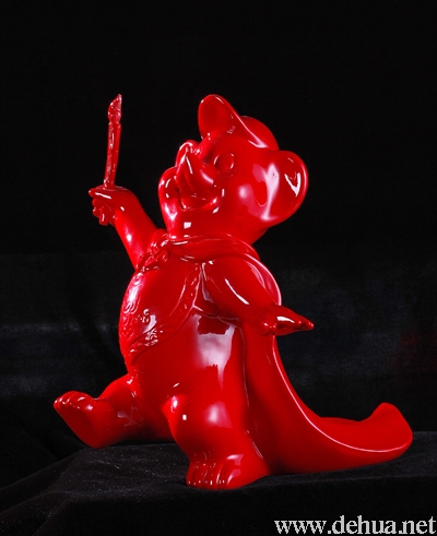 “奧運鼠”被譽為“祈福奧運”。作品高18厘米,寬15厘米。作品是一頭健碩老鼠手擎奧運火炬,身披奧運大旗,以奔跑動作來迎接“2008·北京奧運會”的到來,是2008年德化紅釉賀歲瓷中的精品。
