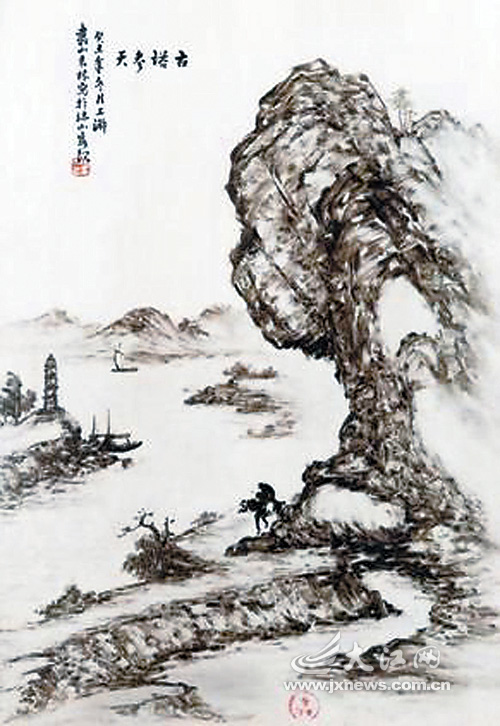 用于墨彩瓷畫的墨彩,其主要原料是銅粉、青料和石綠。墨彩是釉上彩,在已燒成的白釉器上,以上述原料的墨彩繪畫寫字,再置入800℃左右的烘爐中烘烤,形成的墨彩畫和墨字,極似傳統(tǒng)的中國水墨畫,因此備受文人畫家和藏家青睞。