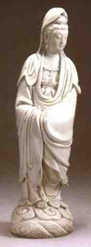 用瓷器的原料和燒制工藝做出的雕塑藝術(shù)品,也包括實用瓷器上附加的裝飾雕塑。瓷塑成型有的用瓷泥捏塑,有的用范模將泥料擠壓成型,近代還有用石膏范注漿成型的。瓷器發(fā)明以后,開始都是生產(chǎn)滿足日常生活需要的實用器物,如碗、盤、杯、瓶、罐等。隨著工藝的成熟,逐漸做出一些滿足人們意識形態(tài)需要的雕塑藝術(shù)品和陳設(shè)品。如東漢時的瓷燈、燈座塑成人物形象,身上還爬滿偷油的老鼠。三國兩晉南北朝時期的青瓷谷倉罐,在一個瓷罐上塑出亭臺樓閣、長廊列舍等多層建筑,上面有持械守衛(wèi)的人物,有披麻戴孝作道場的送葬場面,庭園正中立看刻寫年號和吉祥頌詞的碑碣、周圍還環(huán)繞著各種鳥獸。羊形器、牛形燈等也是以雕塑為豐的實用器具。西晉瓷塑有神獸尊、仙人騎獅、持械的部族武裝、對坐的文人學(xué)士、各類動物、雞籠狗舍模型、蛙形水孟等。隋、唐時期用雕塑手法或用陶范成型作出瓷俑,如鎮(zhèn)墓獸、文吏武官、男仆女侍、明駝駿馬、獅子,以及童于騎獸等玩具。宋、元、明、清時代的瓷塑包括瓷枕上塑出的人物、動物形象,還有童子拜觀音、神仙故事、觀音、達(dá)摩等。有的瓷塑還加彩飾,這些瓷塑是中國雕塑藝術(shù)的重要組成部分。在中國陶瓷史上出現(xiàn)許多杰出的工匠,大多數(shù)沒有留下姓名。見于文獻(xiàn)記載的有宋吉州窯的舒翁、舒嬌,明末清初福建德化窯的何朝宗、張壽山、林朝景,清代景德鎮(zhèn)的六十四等人。其中何朝宗、張壽山、林朝景等人雕塑的白瓷觀音、達(dá)摩形象,亨譽海內(nèi)外,被譽為東方藝術(shù)的明珠。(見下圖)