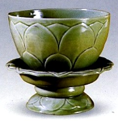 越窯青瓷蓮花盞托 五代 高13厘米