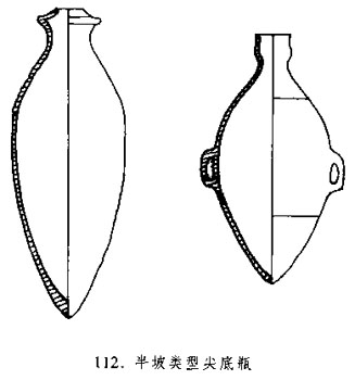 新石器時(shí)代陶器,仰韶文化半坡類(lèi)型最具代表性的器物之一。汲水器。紅陶質(zhì),手工制作。器形為小直口,細(xì)頸,長(zhǎng)圓腹,尖底.肩部或腹部有對(duì)稱(chēng)的雙系,用以穿繩。器表多有繩紋。燒結(jié)程度較好,質(zhì)地堅(jiān)實(shí)。汲水時(shí)由于重力作用,瓶口會(huì)自然向下,待水將滿(mǎn)時(shí),瓶身自動(dòng)倒轉(zhuǎn),口部向上。仰韶文化廟底溝類(lèi)型及馬家窯文化遺存中發(fā)現(xiàn)的尖底瓶略有不同。廟底溝類(lèi)型的尖底瓶為雙唇,小口,器身瘦長(zhǎng),肩腹部無(wú)系。馬家窯文化的尖底瓶為侈口,直頸,折肩,腹有雙系,以細(xì)泥橙黃陶制成,器表涂淺紅色陶衣,以黑彩繪旋紋,紋飾充滿(mǎn)動(dòng)感,制作精細(xì)。(見(jiàn)圖112)