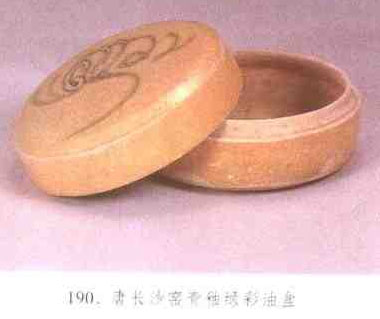 瓷質(zhì)容器。按使用功能可分為盛裝化妝品的油盒、粉盒、胭脂盒;存放銅鏡的鏡盒;裝藥的藥盒、裝茶末的茶盒、裝食品的果盒和文具用品筆盒、印泥盒等。油盒一般為扁圓柱形,蓋與盒身以子母口扣合。因江蘇揚(yáng)州唐城遺址山土的唐長(zhǎng)沙窯制品蓋面有褐彩書“油合”銘文而知其用途。化妝盒一般形體小巧,造型從宋代起尤為豐富,有扁圓盒中套裝三個(gè)小盒的子母盒,有三盒聯(lián)體并堆花裝飾的,還有瓜棱形、八方形、菊瓣形、石榴形、桃形。朵花形等多種樣式。鏡盒盛行于南北朝,宋代亦有生產(chǎn)。造型扁圓,平底內(nèi)凹,附蓋。宋代磁州窯鏡盒有的蓋面有鈕、還見有蓋面書“鏡盒”銘文的。宋代景德鎮(zhèn)窯有燒造盒子的專業(yè)作坊,青白釉盒底部多有“某家合子記”的戳記。明清時(shí)代盛行瓷質(zhì)果盒,造型有圓形、方形、倭角方形等,有的盒內(nèi)分格,還有層層相疊的套盒。(見圖190)