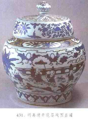 一種進口青花料。上等回青亦稱“佛頭青”。明王世愁《窺天外乘》記載:“回青者,出外國。”又《明神宗實錄》萬歷二十四年條載:“回青出吐魯番異域,……而御用回青西域回夷大小進貢,置之甚難。”回青主要是明代正德后期至萬歷早期景德鎮(zhèn)徹窯廠使用的,多與石子青配合制料。“回青淳,則包散而不收;石青加多、則色沉而不亮。”(明《江西大志·陶書》)二料搭配。相得益彰,燒制出的青花色調藍中微泛紅紫、濃重、鮮艷,使青花的發(fā)展又進入了一個新階段。  (見圖431)