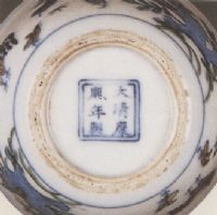 說 明: 此杯造型及圖案均仿著名的成化斗彩雞缸杯.