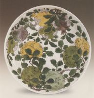 說 明: 此類在刻有龍紋的器皿上飾折枝花果紋的素三彩器制作精良,是康熙官窯器中的上乘之作,彌足珍貴.