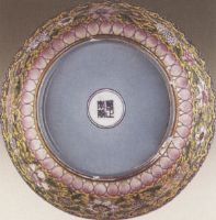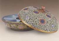 說 明: 此盒鏤雕技法精巧細(xì)膩,雖裝飾繁密,但層次分明,繁而不亂.此種將粉彩與鏤空相結(jié)合的技法,至乾隆時(shí)曾被大量使用.