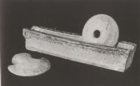 說(shuō) 明: 東漢.體似船型.胎質(zhì)灰白,兩面施青釉不到底.這件用于研磨藥物的瓷碾是醫(yī)療器械中使用瓷器最早的一例.