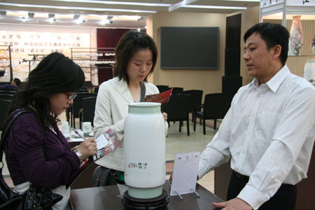 工作人員現(xiàn)場介紹景德鎮(zhèn)陶瓷