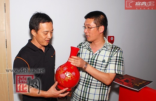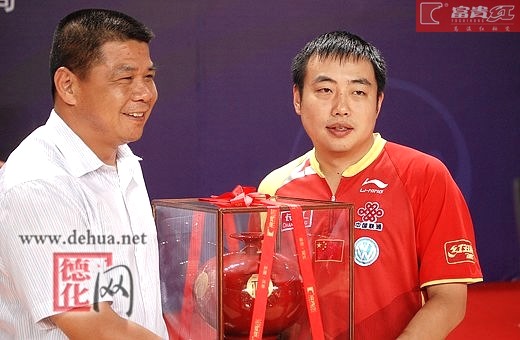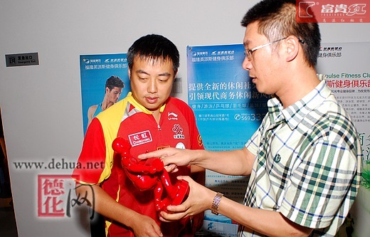 賽前,廈門市湖里區(qū)區(qū)委書記李棟梁與國乒隊互贈紀(jì)念品,著名運動員、國家男乒主教練劉國梁代表國乒隊接過了中國瓷都·德化富貴紅“天地五福”瓷瓶。富貴紅文化發(fā)展有限公司藝術(shù)總監(jiān)徐少東還向國家男乒贈送了富貴紅瓷雕“拼搏”以及“賞瓶”并預(yù)祝國乒隊在奧運會上獲得好成績,爭取包攬金牌。