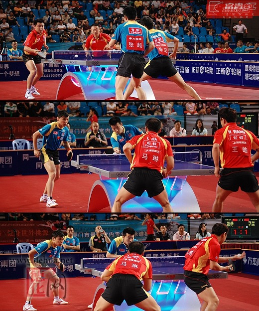 7月12日,正在廈門進行封閉訓(xùn)練的國家乒乓球男隊在廈門湖里區(qū)中國乒乓球訓(xùn)練基地舉行“福隆杯”中國乒乓球隊北京奧運會熱身賽。國家男乒即將參加奧運會的主力隊員王皓、王勵勤和馬琳(2008奧運隊),替補隊員陳玘、馬龍和張超(2012奧運隊)等優(yōu)秀選手登場亮相。