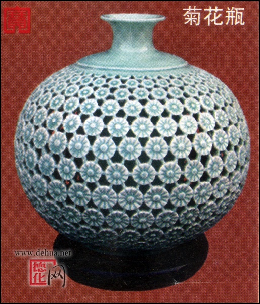 優(yōu)秀的造型和裝飾傳統(tǒng)藝術(shù),為當(dāng)代德化陶瓷的創(chuàng)新提供了寶貴的經(jīng)驗(yàn)。德化的陶瓷藝術(shù)設(shè)計(jì)師們以現(xiàn)代的設(shè)計(jì)理念認(rèn)真地審視和學(xué)習(xí)傳統(tǒng)陶瓷設(shè)計(jì),從中得到啟示和教益,結(jié)合當(dāng)代人的生活實(shí)際需求,設(shè)計(jì)并生產(chǎn)出一批優(yōu)秀的陶瓷產(chǎn)品。楊東旸創(chuàng)作設(shè)計(jì)的鏤空菊花瓶,鏤雕工藝嚴(yán)謹(jǐn)精致,合理地安排鏤空花紋的裝飾部位,有效地利用鏤空與光潔的白地對比,形成了在變化中求和諧的藝術(shù)效果,作品的整體效果頗具新意,豐富了德化陶瓷陶的表現(xiàn)手法。圖案在雕鏤時(shí),每—刀都力求力道一致,它同樣可使胎體的四周受力趨于均勻,在制作鏤空瓷瓶的時(shí)候,人們不但要求外面的圖案雕鏤工整,對于胎體的內(nèi)壁也力求平整美觀。這也使胎體的雕鏤增加了難度,即使是—位熟練的瓷工,要雕鏤出這樣—個(gè)花瓶,—般也要一到兩天的時(shí)間。