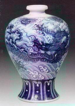 明宣德官窯青花海水龍紋梅瓶