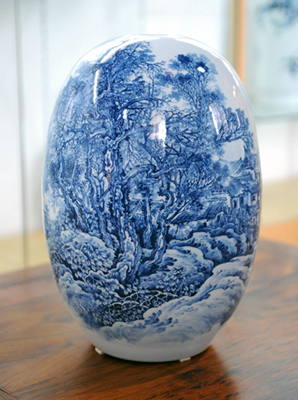 28日,“景德鎮(zhèn)陶瓷藝術(shù)家劉敏青花瓷作品展”在南開(kāi)區(qū)迎水道天津民間藝術(shù)展示中心展出。