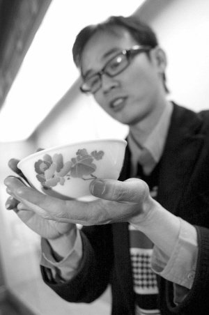 在展覽現(xiàn)場(chǎng),一個(gè)只有飯碗大小的瓷碗引起了大家的注意,這個(gè)碗和其他生活用品花紋不一樣,碗壁上燒的是芙蓉花,看上去,芙蓉花正在盛開(kāi),在燈光的襯托下,顯得格外嬌麗?从浾邆兏信d趣,夏建平有些得意,他說(shuō):這是高白釉雙面畫(huà)芙蓉花觀(guān)賞碗,并不是餐具,是專(zhuān)門(mén)給毛主席欣賞的,一共只有20只,早在1997年就曾在拍賣(mài)會(huì)上拍出170萬(wàn)元!“這個(gè)碗是1996年,我到一個(gè)收藏者家里磨了好多次,最后用一個(gè)名人燒制的花瓶和10多萬(wàn)元換來(lái)的。”