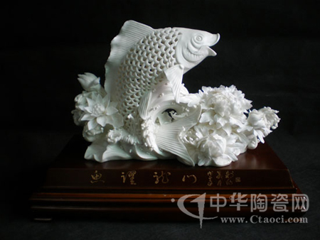 天下人都有共同美好的愿望,而且也想通過某一個(gè)方式將這一愿望表達(dá)出來!遏~躍龍門》是周秀燕對世人美好愿望的一個(gè)體現(xiàn)。作品采用德化特有的“白如雪、潤如玉、透如絹”的優(yōu)質(zhì)瓷泥,演繹了對學(xué)子能夠功成名就的美好祝愿。
