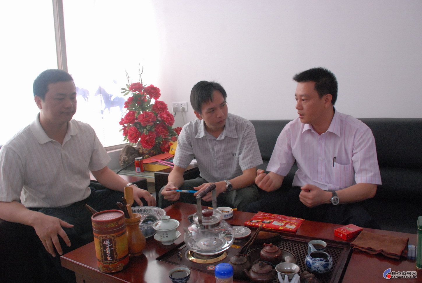 薩米特品牌總經(jīng)理黎汝強(qiáng)(左)、搜狐家居記者(中)、冠奇建筑陶瓷董事長肖冠奇(右)