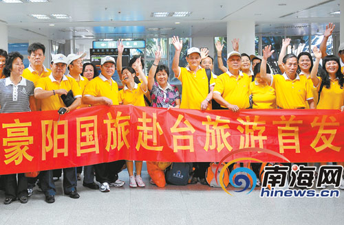(本報臺北5月2日電)5月2日,我省首個赴臺旅游團隊海口啟程。本報記者王凱通訊員王濤攝