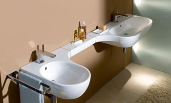 適用于空間較大的裝飾較高檔的衛(wèi)生間使用,臺(tái)面可采用大理石或花崗石材料。
