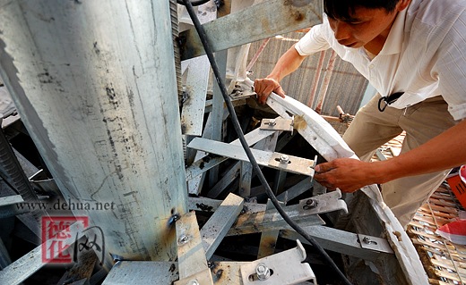 圖為瓷都廣場(chǎng)主題雕塑——巨型陶瓷“渡海觀音”已經(jīng)開(kāi)始安裝調(diào)試