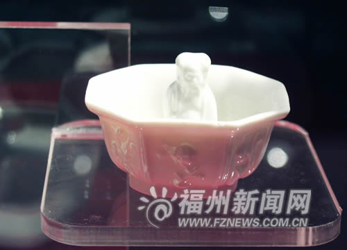 張振玉介紹,這次展覽展出了明代德化白瓷的有名器型,有梅花杯、鶴鹿杯,這些作品以裝飾和胎釉的質(zhì)感取勝。