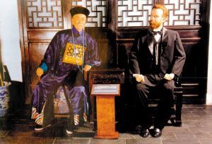 1879年直隸總督兼北洋大臣李鴻章與美國(guó)總統(tǒng)格蘭特在天津會(huì)談的場(chǎng)景