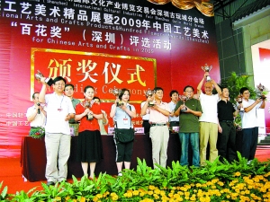 中國工藝美術(shù)往何處去?如何實現(xiàn)工藝美術(shù)技藝到文化創(chuàng)意產(chǎn)業(yè)的華麗轉(zhuǎn)身?昨天下午,在激動人心的2009中國工藝美術(shù)“百花獎”頒獎典禮后,羅湖區(qū)委常委、常務(wù)副區(qū)長倪澤望,羅湖區(qū)文化局局長張遠(yuǎn)翔,中國輕工珠寶首飾中心副主任張淑榮和來自全國各省市的工藝美術(shù)大師以及眾多的行業(yè)精英一起,在文博會古玩城分會場卓氏畫院,分享了一場思想的盛宴——2009全國工藝美術(shù)“高峰論壇”。