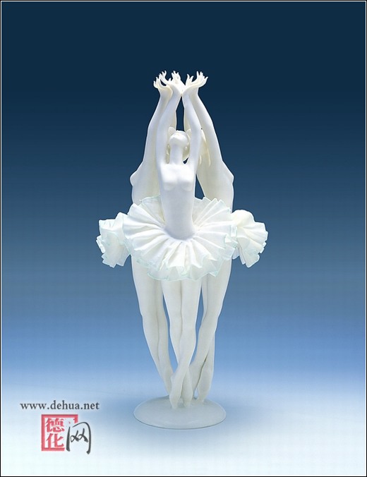 1993年,陳桂玉被古老而又美麗的芭蕾舞劇《天鵝湖》深深打動(dòng)了,經(jīng)過(guò)與丈夫數(shù)月的討論、嘗試、封存,再討論、再?lài)L試、再封存,一件經(jīng)典絕妙的《天鵝湖》問(wèn)世了:三個(gè)美麗絕倫的少女,身著薄如蟬翼的芭蕾舞裙,足尖輕輕一點(diǎn),手指柔美舞動(dòng)……完美的藝術(shù)造型,配上晶瑩潔潤(rùn)的德化瓷,使整件作品有如月光下的舞蹈,如畫(huà)如歌。就在作品欲成未成之際,一位臺(tái)灣客商慕名來(lái)訪(fǎng),突然指著陳列架上的《天鵝湖》,驚喜地叫道:“這件作品我要,l萬(wàn)元賣(mài)給我!”