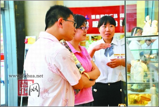 在數(shù)字的背后,是一個個振奮人心的消息。去年6月,德化白瓷地理標(biāo)志產(chǎn)品國家標(biāo)準(zhǔn)通過專家審定,使德化陶瓷成為我國陶瓷產(chǎn)區(qū)中率先擁有國家標(biāo)準(zhǔn)的瓷類產(chǎn)品。去年10月,德化縣日用工藝陶瓷產(chǎn)業(yè)集群被授予“2008年中國百佳產(chǎn)業(yè)集群”稱號。去年11月,在“中國工藝美術(shù)行業(yè)特色區(qū)域”榮譽稱號授牌儀式上,該縣再次榮膺“中國瓷都·德化”榮譽稱號。