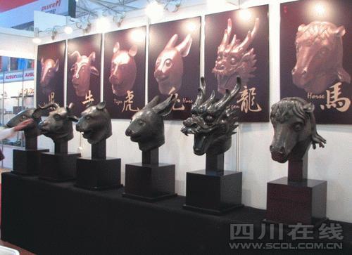 來自四川的青銅時(shí)代禮品公司帶來的仿真圓明園十二生肖銅像為青銅鑄造,形象生動(dòng)夸張、神態(tài)栩栩如生,讓為國寶外流無法親睹真品而耿耿于懷的國人有了親手觸摸寄托感念的機(jī)會(huì),雖然他們是仿造的,但大小外形與真品一致。展會(huì)期間每個(gè)售價(jià)6000元。