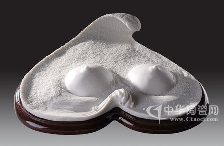 作者以抽象的藝術(shù)語(yǔ)言和簡(jiǎn)練的雕塑手法來(lái)表現(xiàn)這一主題——愛(ài)護(hù)環(huán)境,保護(hù)人類(lèi)的生命源泉。作品以溫潤(rùn)如玉的“中國(guó)白”為胎體,采用一顆心的造型,象征人類(lèi)的愛(ài)心和地球的生命力息息關(guān)連,猶如大地母親孕育人類(lèi)的乳房,試想,如果大地母親的乳汁全部被吸干,心尖也已枯萎變形,綠地產(chǎn)生沙化,僅剩心尖流淌的幾滴水珠,是血?是淚?人類(lèi)將何以生存。飽滿情感蘊(yùn)育于作品中,唱出了世上最美麗的聲音——呼喚愛(ài)護(hù)地球。ㄌK曉霞)