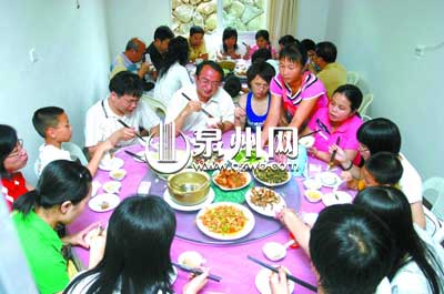 中午,大家在岱仙瀑布檢票口附近的岱仙餐館就餐。每桌豐盛的八菜兩湯,讓讀者們品嘗到了德化的特色農(nóng)家菜肴。“我很少吃到正宗的農(nóng)家菜肴,尤其是有機(jī)蔬菜,這里的菜味道真的很不錯(cuò),尤其是苦菜排骨湯,很清,可以消暑。”第一次品嘗到特色農(nóng)家菜的洪小姐有感而發(fā)。