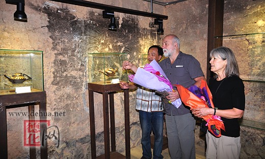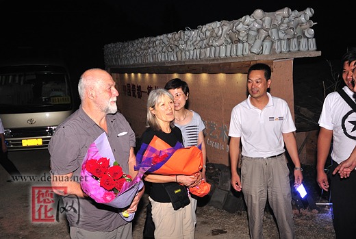 7月7日,新西蘭奧克蘭陶瓷協(xié)會主席PTEER LANGE率領陶藝家一行到德化月記窯開展陶瓷藝術交流和創(chuàng)作,副縣長嚴章瑜、文體局局長陳金殿到場迎接。