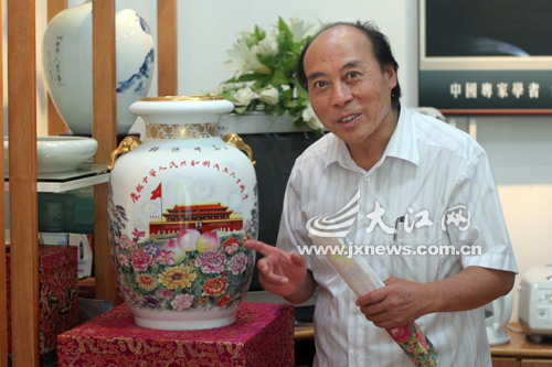 在新中國(guó)成立60周年前夕,景德鎮(zhèn)陶瓷學(xué)院任瑞華教授創(chuàng)作的一件“錦繡中華萬(wàn)祥瓶”問(wèn)世,作品構(gòu)思時(shí)間長(zhǎng)達(dá)3年之久,用6個(gè)月時(shí)間創(chuàng)作完成。