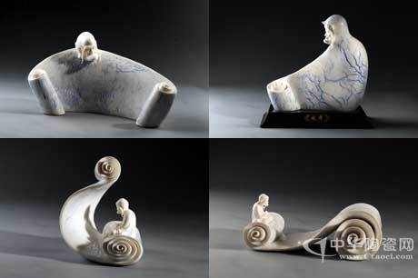 該系列作品首創(chuàng)以中國(guó)特有的卷書為主體,采用研究所最新研制成功的窯變青花瓷為背景,一道道可遇不可求的窯變裂紋,象征著“大千世界,千變?nèi)f化,功到自然成”的禪宗思想。作品立意高遠(yuǎn),構(gòu)思新穎,精雕細(xì)刻,工藝精湛,人書合一,妙趣天成,創(chuàng)造性的表現(xiàn)了“博大精深,源遠(yuǎn)流長(zhǎng)”的佛教文化。(蘇曉霞)