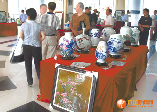 昨日,首屆九(江)景(德鎮(zhèn))著名陶瓷書畫藝術(shù)大師作品展暨交流筆會(huì)在市少兒活動(dòng)中心拉開帷幕。