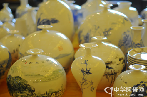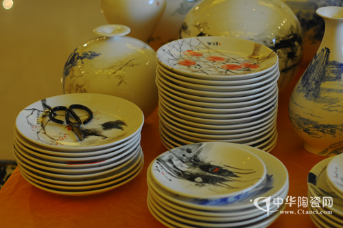 海西騰飛,當(dāng)代國畫名家創(chuàng)作行其中一站走進(jìn)中國瓷都德化,在福建德化宏晟陶瓷公司創(chuàng)作室里,來自7個(gè)省份10多位當(dāng)代國畫名家在精美的陶瓷坯體上揮毫創(chuàng)作。多天來,10多位當(dāng)代國畫名家已取得喜人的成果,一件件精美的作品已成功出爐,清新淡雅、精美絕倫。據(jù)福建美術(shù)出版社社長施群介紹說,這些作品將要巡回展覽及出版畫冊。