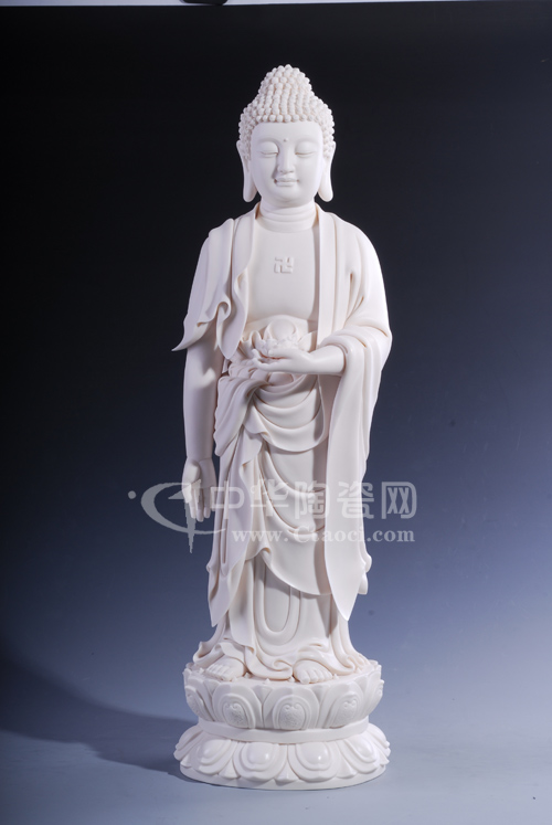在連紫華的作品及和他的交流中,我們可以找到連紫華他所從事傳統(tǒng)瓷塑的那份凈與禪的感覺。連紫華說:“做傳統(tǒng)工藝,不光要有扎實的基礎(chǔ)功,還要人的心能靜下來做,是不是能靜心下來做,那這種感覺就直接體現(xiàn)在的作品上。假設(shè)我做的一尊釋迦摩尼佛的像來說,就先要了解釋迦摩尼佛在佛教里面的歷史背景。了解完,我們就知道釋迦摩尼佛是慈祥、莊嚴(yán),但是要略帶一點威嚴(yán)的感覺,這跟他的身份背景有關(guān)系。我在創(chuàng)作過程中,特別是寫臉部表情的刻畫,我就很注意到這些細(xì)節(jié)。那些細(xì)節(jié)的體現(xiàn),你平常沒有用心,你是感覺不出來的。”