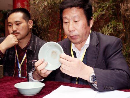 直徑不到十厘米,釉面為粉青釉的一對平底小盤,十多年前被成都近郊某老農(nóng)修房子時從地底下挖出并當(dāng)做了煙灰缸。在充當(dāng)煙灰缸很長一段時間后,又以五十元錢買給了收藏家。10月28日,這對平底小盤被送到了中國收藏家協(xié)會陶瓷收藏委員會主任荊治中手中。在仔細(xì)鑒定后荊治中肯定地表示,這對小盤為出自南宋時期的龍泉窯粉青釉,而且是龍泉窯的精品代表,“保守估計(jì)一只得值好幾十萬。”