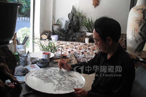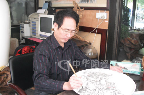 陳行一介紹說,陶瓷繪畫受工藝、器型、材質(zhì)等方面的制約,與宣紙相比難度要加大,要設(shè)法發(fā)掘陶瓷繪畫潛在的表現(xiàn)力,必須結(jié)合器形進(jìn)行合理的構(gòu)思、布局,揚(yáng)長避短,讓陶瓷亮麗的材質(zhì)與畫面有機(jī)的結(jié)合起來,在有限的瓷器里創(chuàng)作出無限的境界。還介紹說,繪畫講究筆墨線條等的對比變化,例如粗細(xì)、疏密、虛實(shí)、濃淡等,從而產(chǎn)生線條的節(jié)奏韻律,講究“氣韻生動”、“以形寫神”、“骨法用筆”,以渾然天成、本色自然、含蓄蘊(yùn)藉為品位,遵循“作品妙在似與不似之間,大似為媚俗,不似為欺世”的創(chuàng)作原則。