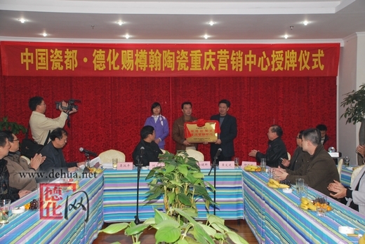 縣委常委、宣傳部長、教育工委書記、中國瓷都德化品牌宣傳工作領(lǐng)導(dǎo)小組常務(wù)副組長涂健圻,縣政府副調(diào)研員、中國瓷都德化品牌宣傳工作領(lǐng)導(dǎo)小組副組長黃發(fā)建,重慶市工藝美術(shù)協(xié)會副會長何發(fā)美,武漢市江岸區(qū)總工會主席呂和平,成都市工藝美術(shù)公司董事長洪星等三城市的有關(guān)部門負(fù)責(zé)人、社會各界人士以及中國新聞社重慶分社、重慶晚報、湖北電視臺、武漢教育電視臺、長江商報、四川電視臺、成都電視臺、四川日報等三地的主要媒體記者分別出席這三個營銷中心的授牌宣傳活動, 涂建圻為三地的營銷中心授牌,黃發(fā)建在三地營銷中心授牌儀式上致辭。